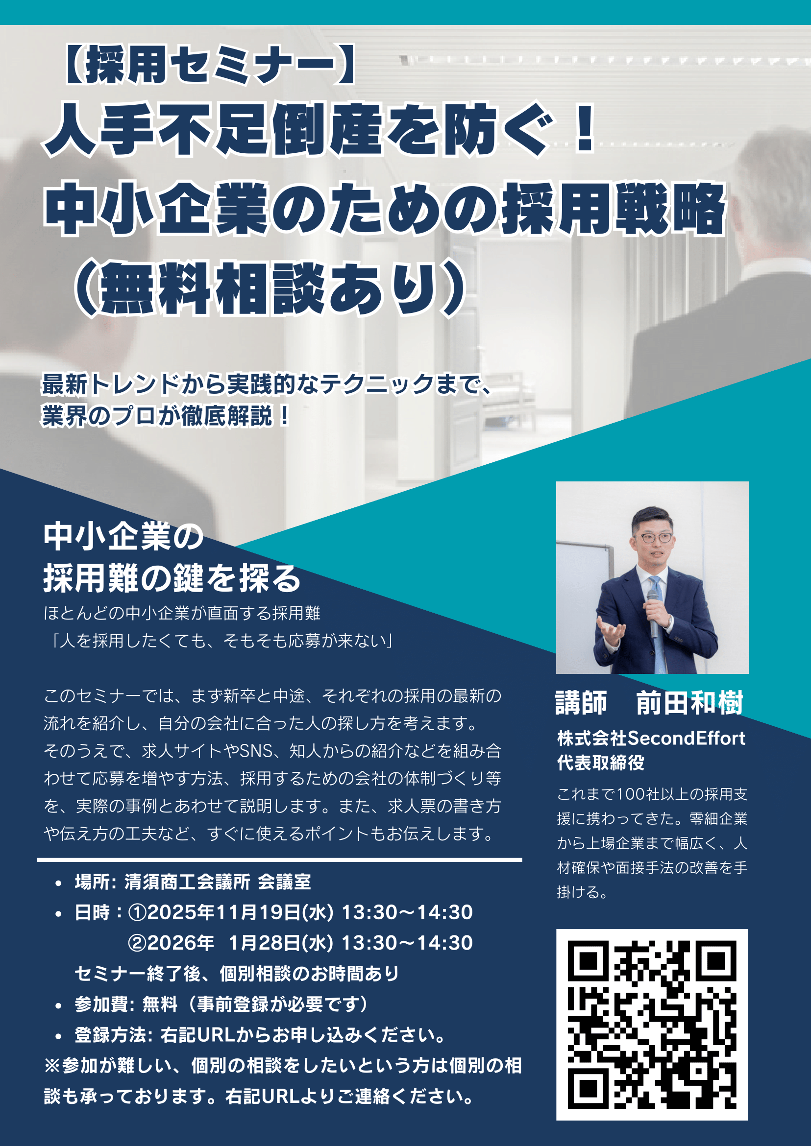 採用セミナー「人手不足倒産を防ぐ!中小企業のための採用戦略」(無料相談あり)