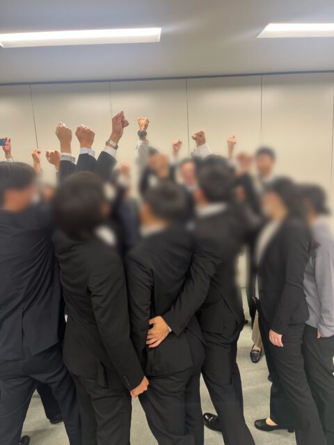 新入社員研修実施(円陣を組んで拳を上げよ)